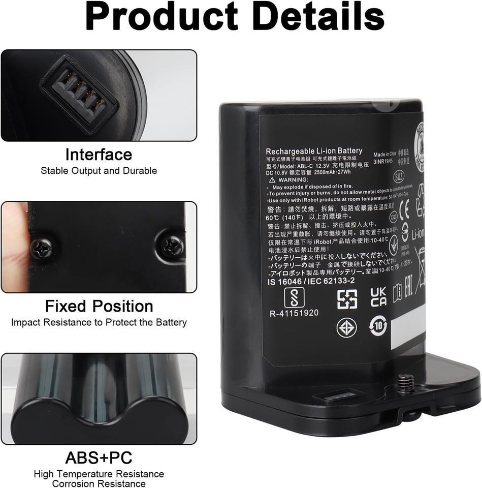 2500mAh Compatible Replacement Battery for iRobot Braava Jet M6(6110) Series Li-ion Battery for M611020/M612880/M612680/M614480 ABL-C Series 3INR 19/65 Vacuum Cleaner