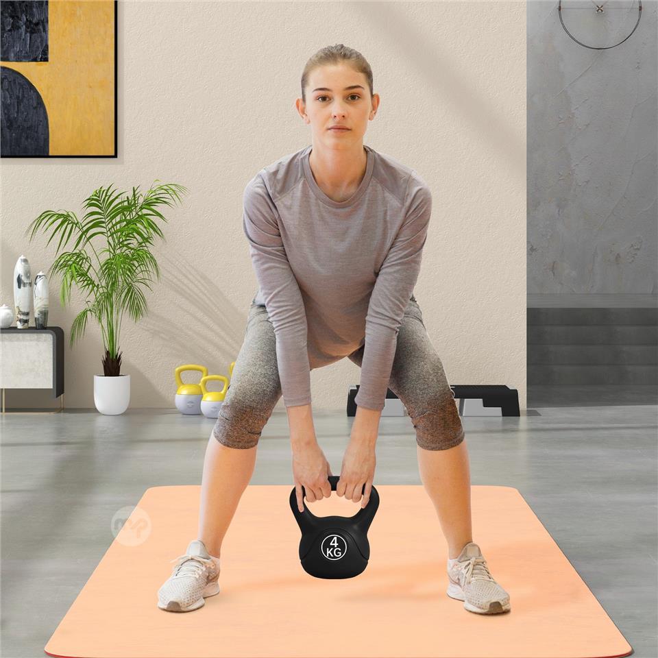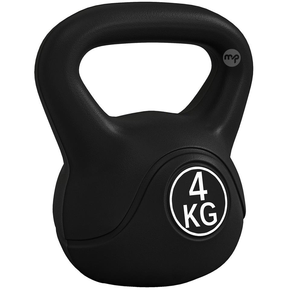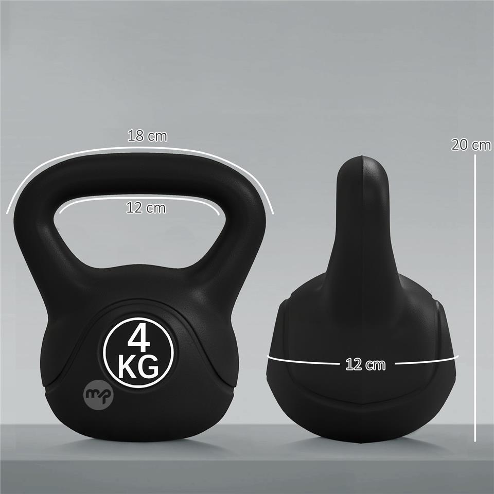 Kettlebell 4kg in Plastic and Sand with Flat Base and Handle, 18x12x20 cm, Black