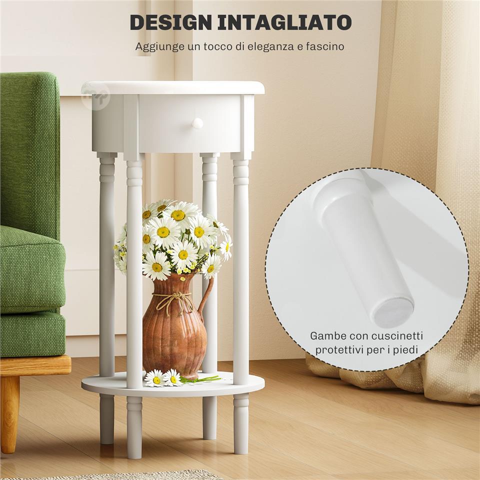 Set of 2 Bedside Tables with Drawer and Wooden Shelf Contemporary Style, Ø35.5 x 71 cm, White