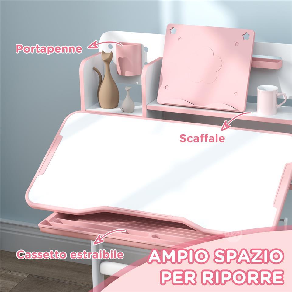 Adjustable Children's Desk and Chair Set, School Desk with Tilting Top, Drawer, Shelf, Pink