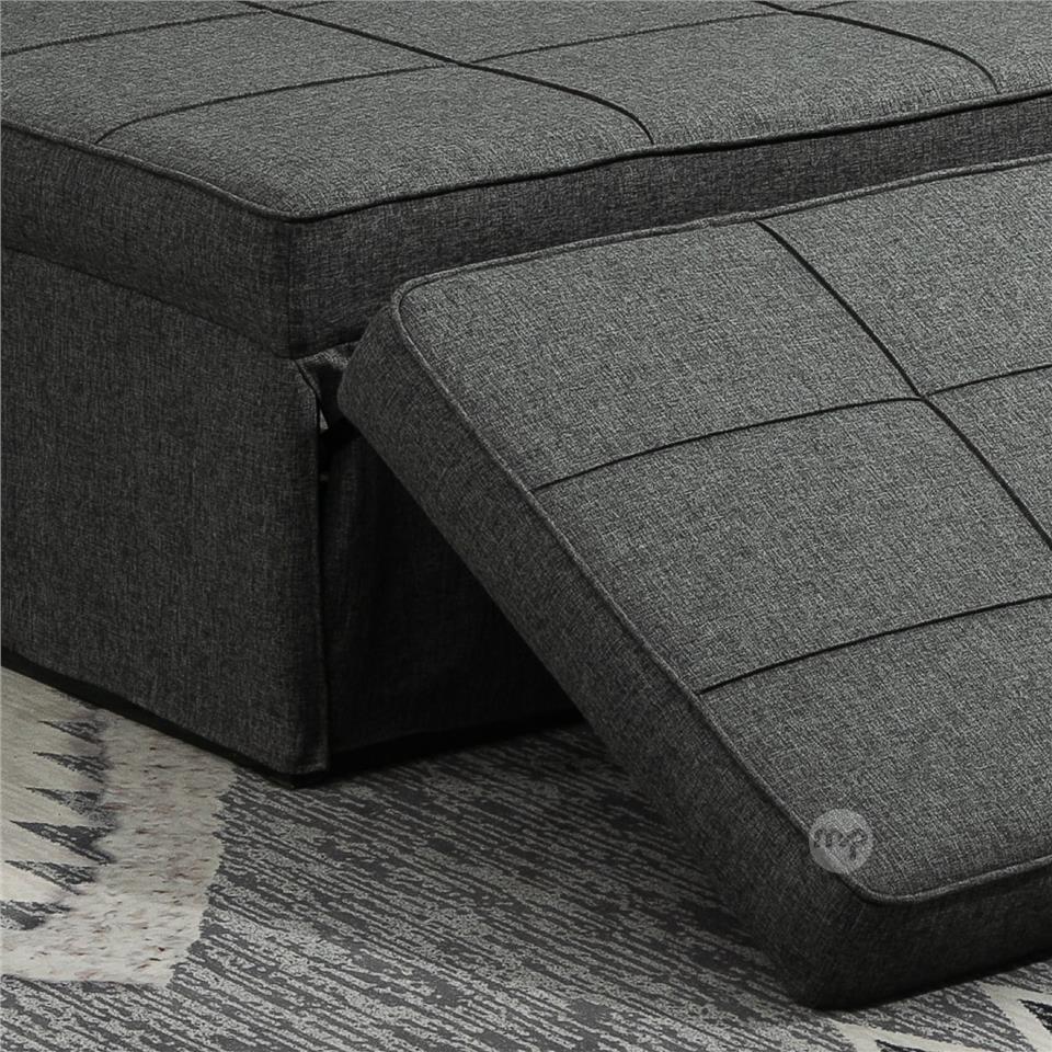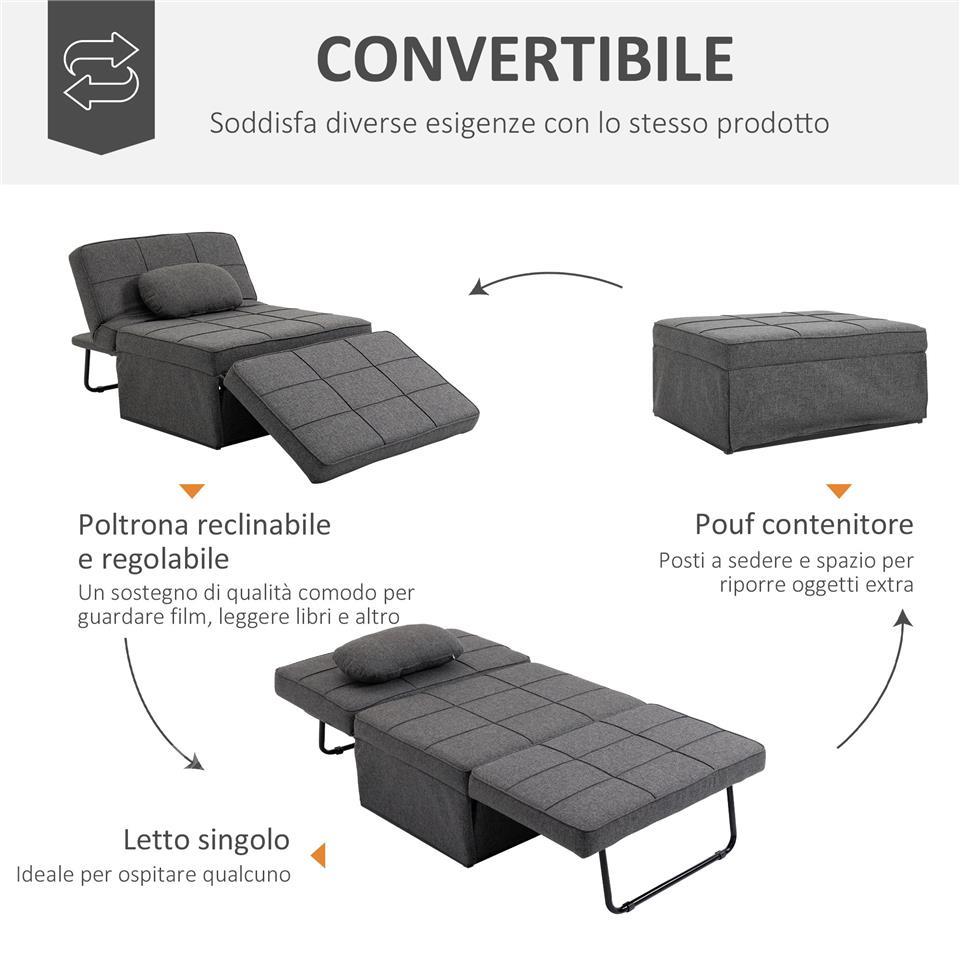 Sofa Bed 3 in 1 with Adjustable Backrest and Cushion, in Linen Effect Fabric, 95x179x78 cm, Grey