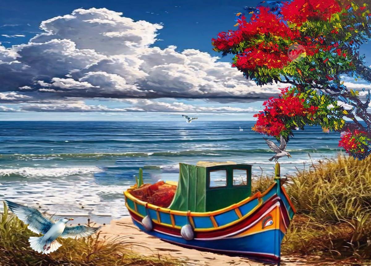 LUZZU AT RAMLA BAY GOZO ---- ORIGINAL HAND PAINTING OIL ON CANVAS 70X50