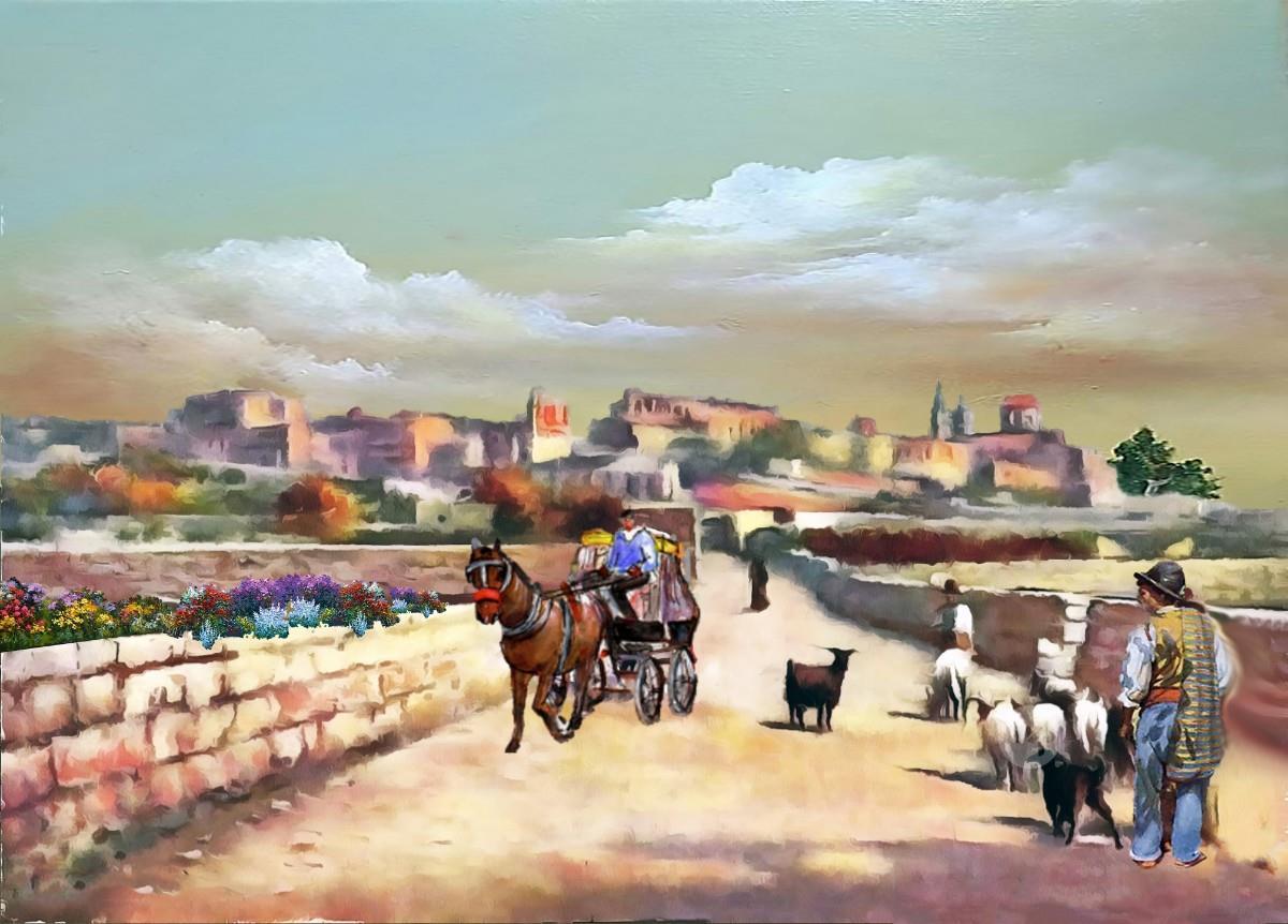 OLD WAY TO MDINA MALTA --- ORIGINAL HAND PAINTING OIL ON CANVAS 70X50