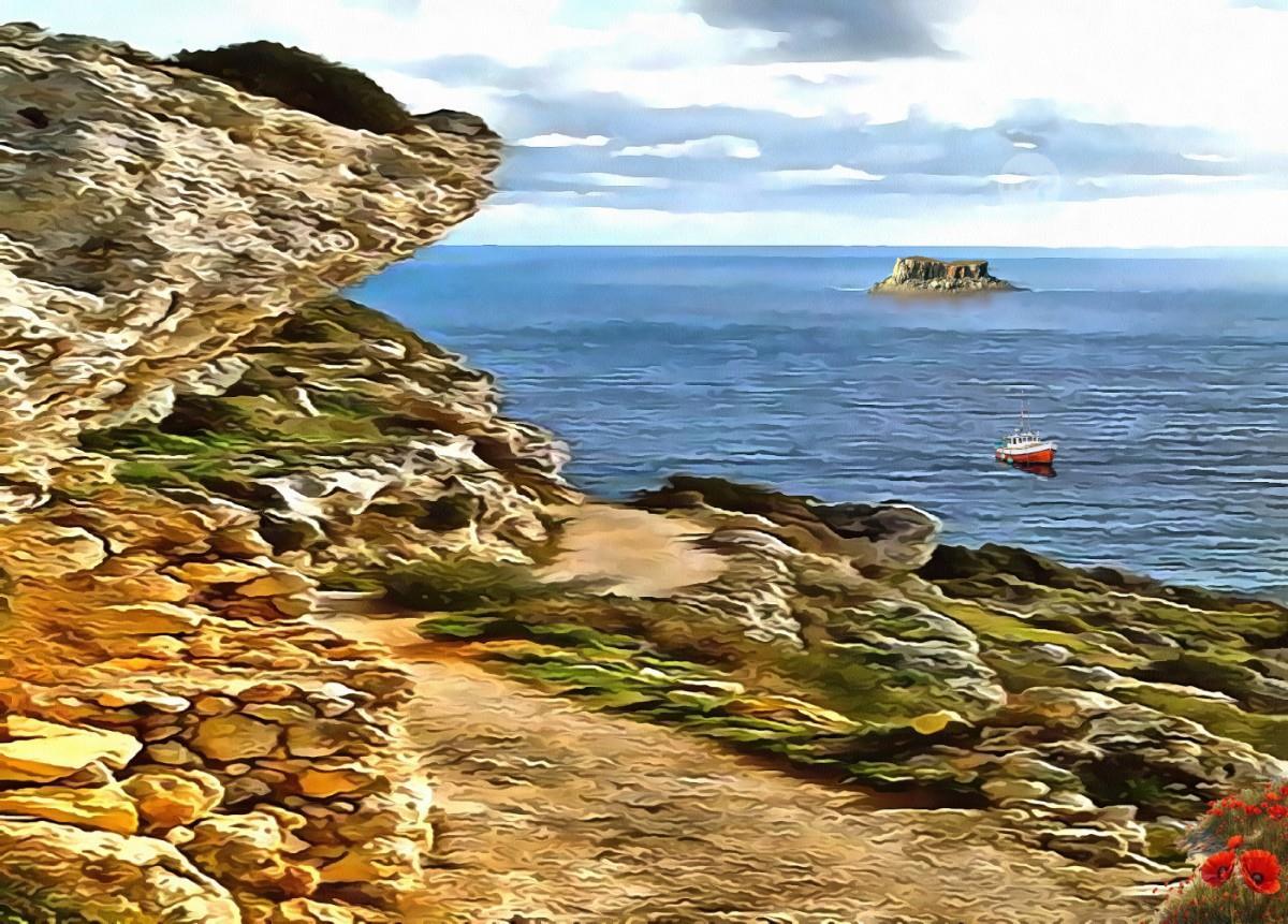 FILFLA ISLAND OF MALTA ---- ORIGINAL HAND PAINTING OIL ON CANVAS 70X50