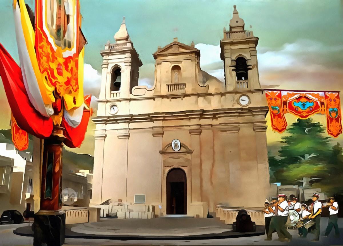 ZEBBUG CHURCH MALTA ---- ORIGINAL HAND PAINTING OIL ON CANVAS 70X50
