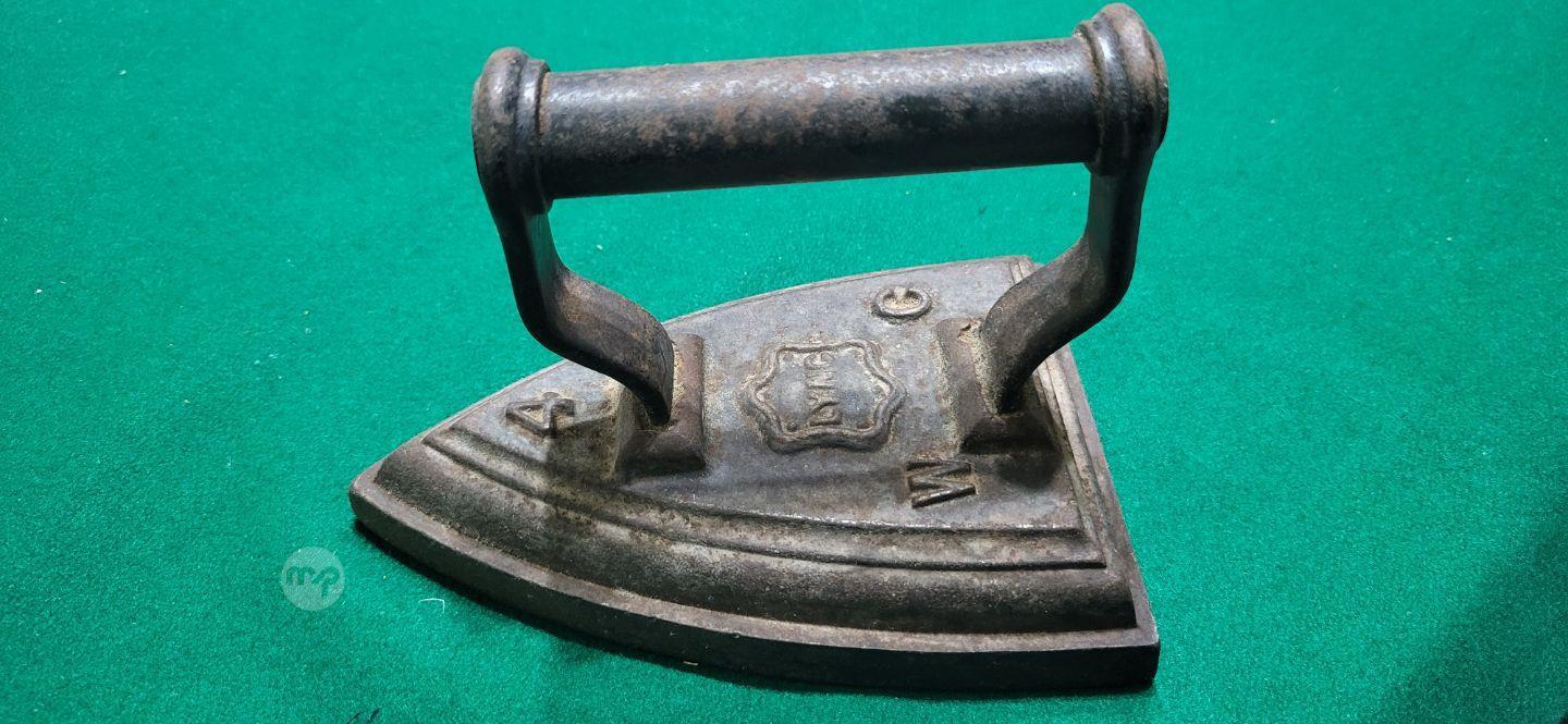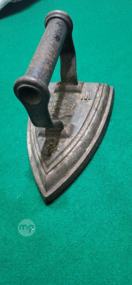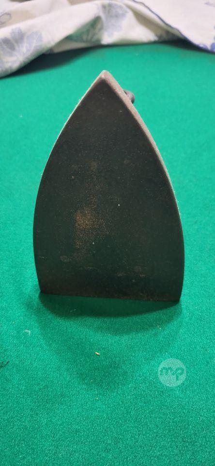 This is an antique cast iron flat iron. These objects, also known as "sad irons" (with "sad" being an old English word for "solid"), were used before electricity to press clothes