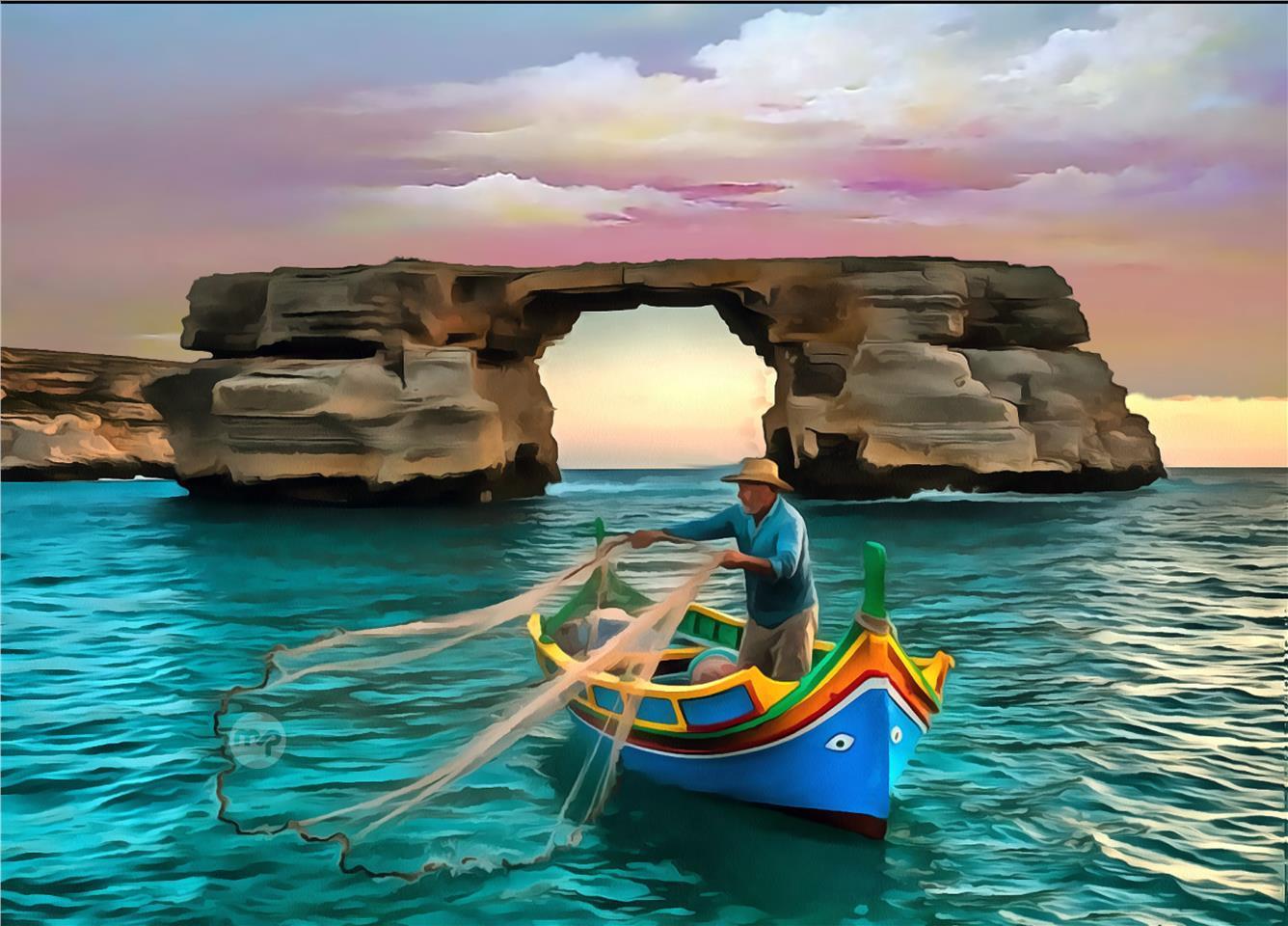 THE DWJRA FISHERMAN GOZO --- ORIGINAL HAND PAINTING OIL ON CANVAS 70X50