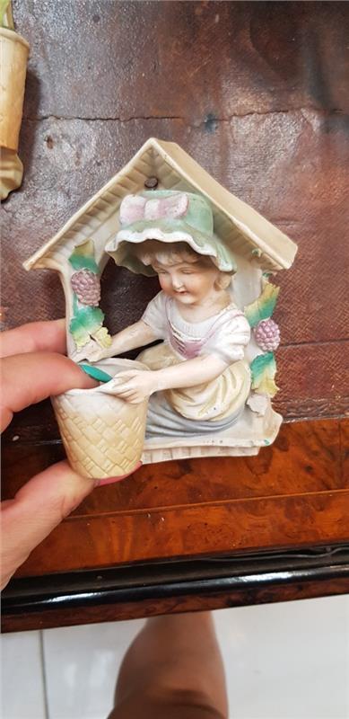 Pair antique wall hanging bisque figurines.45 euros both.
