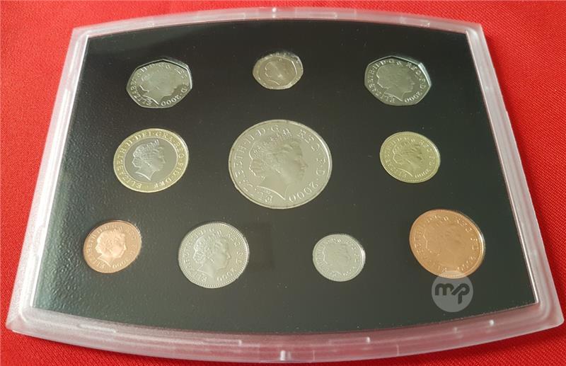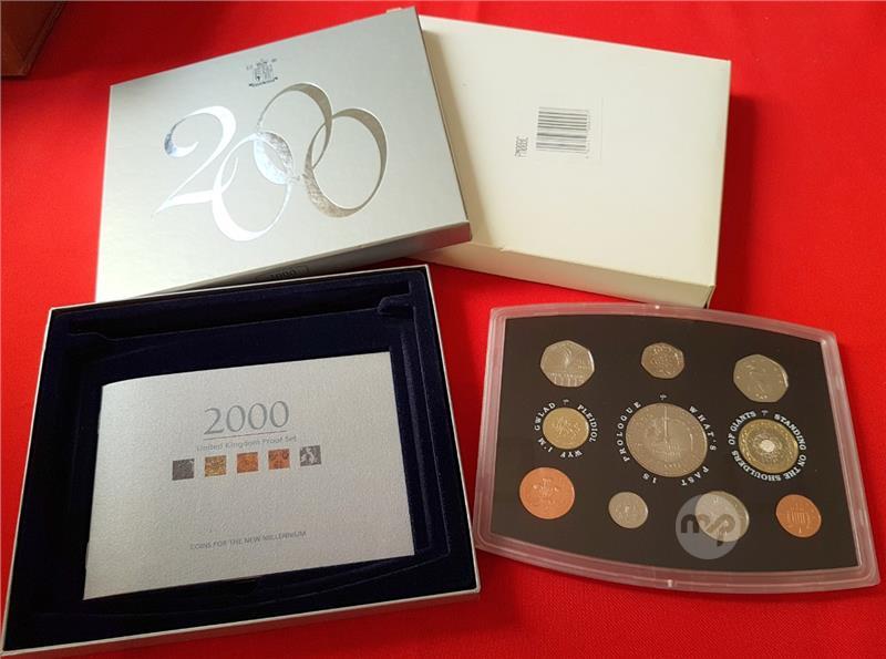 2000 UK Proof Coin Set - coins For The New Millennium - PROOF SET, boxed with display stand