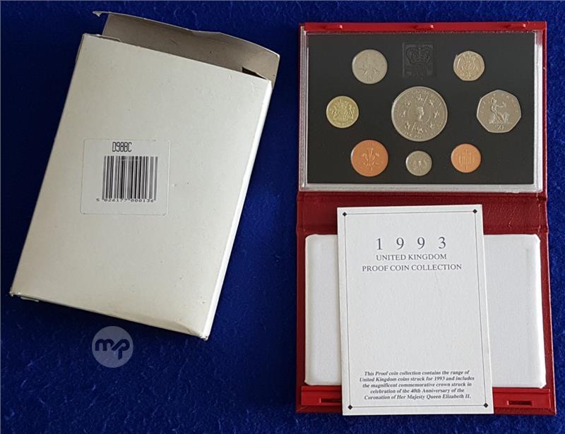 1993 UK Proof Coin Collection including the magnificent commemorative crown struck in the celebration of the 40th Anniversary of the Coronation of Her Majesty Queen Elizabeth II.
