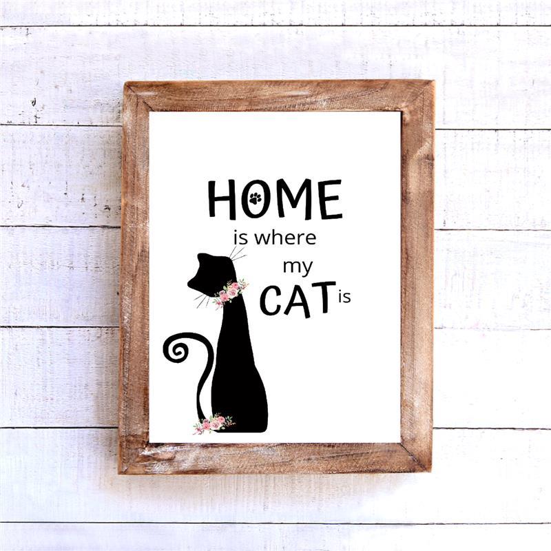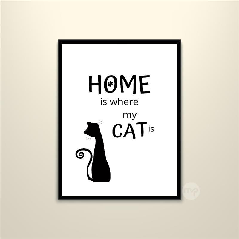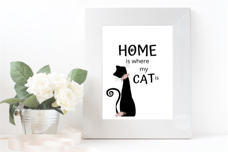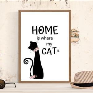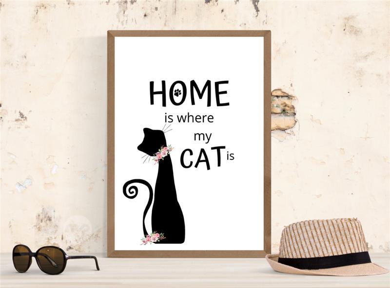 Wall art poster for cat lover. 'Home is where my cat is.'' Available in sizes A2,A3 and A4. This is a printable poster. After purchase, you will download, print and frame this wall decor item yourself.