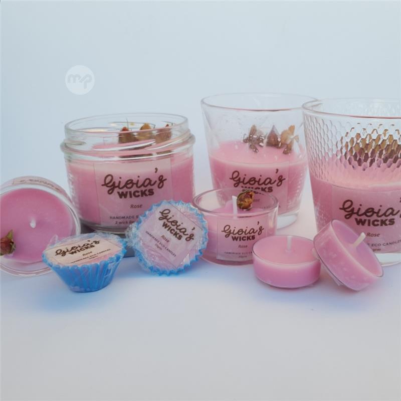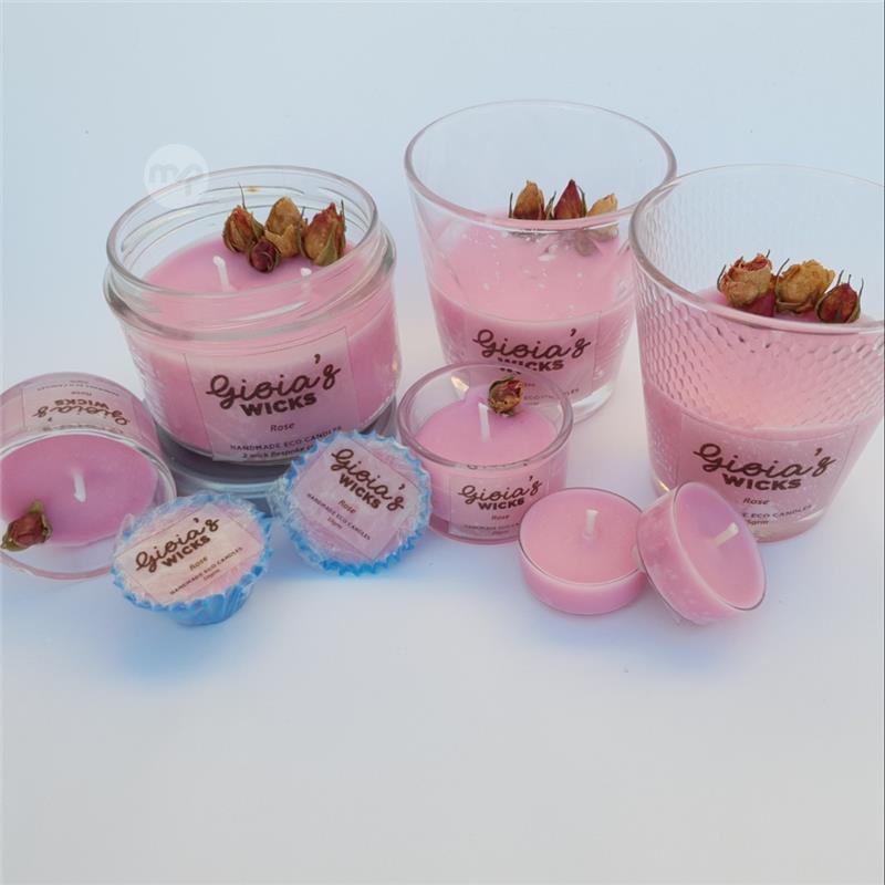 Hand poured, eco- soy scented candle in glass votive (20gr) set of 2, Rose