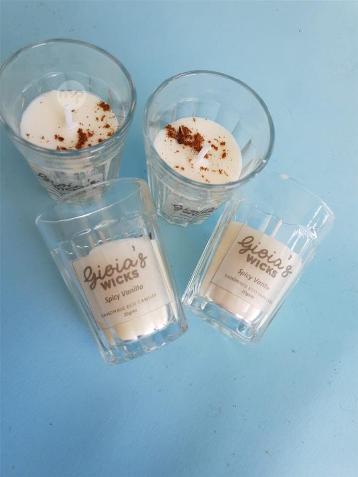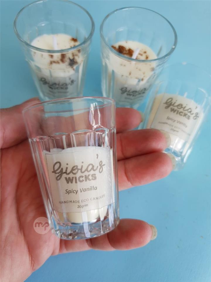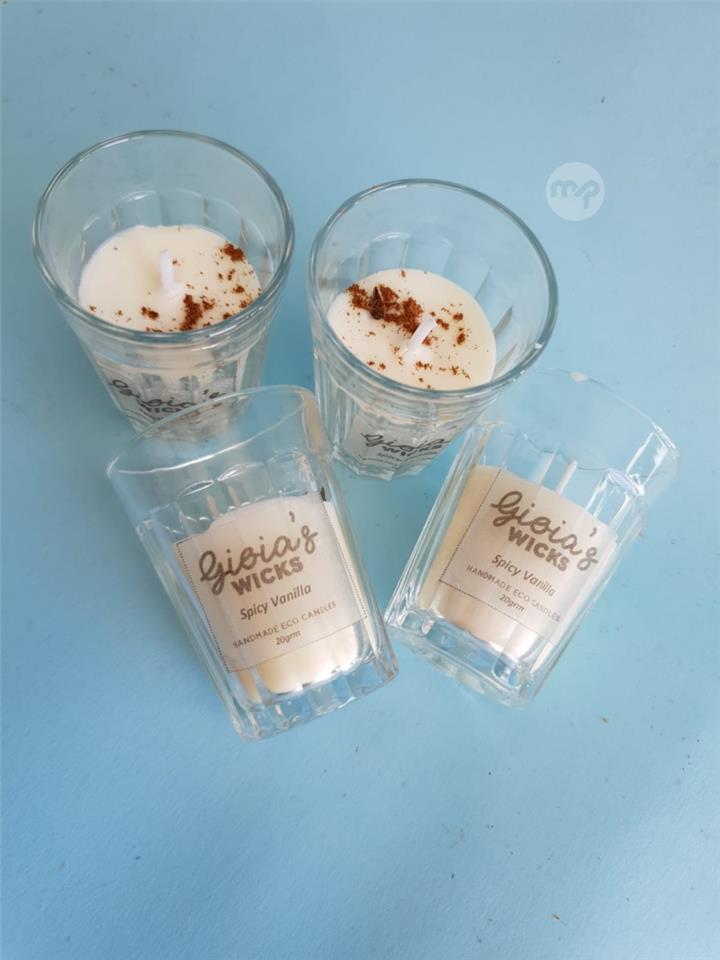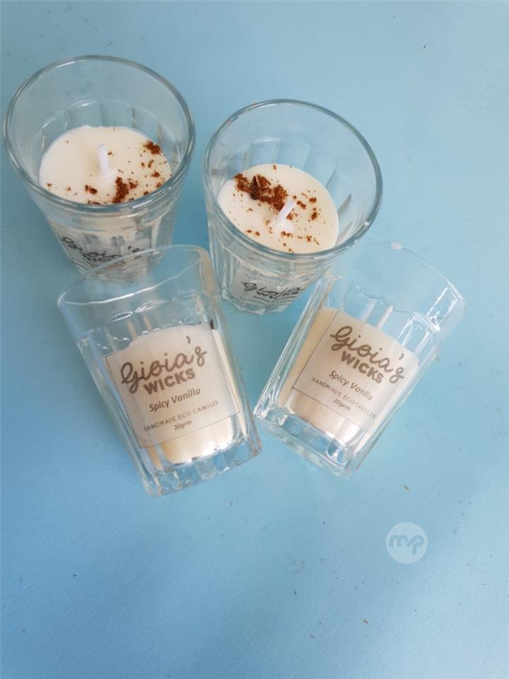 Hand poured, eco- soy scented candle in glass shot(20gr) set of 2, Spicy vanilla