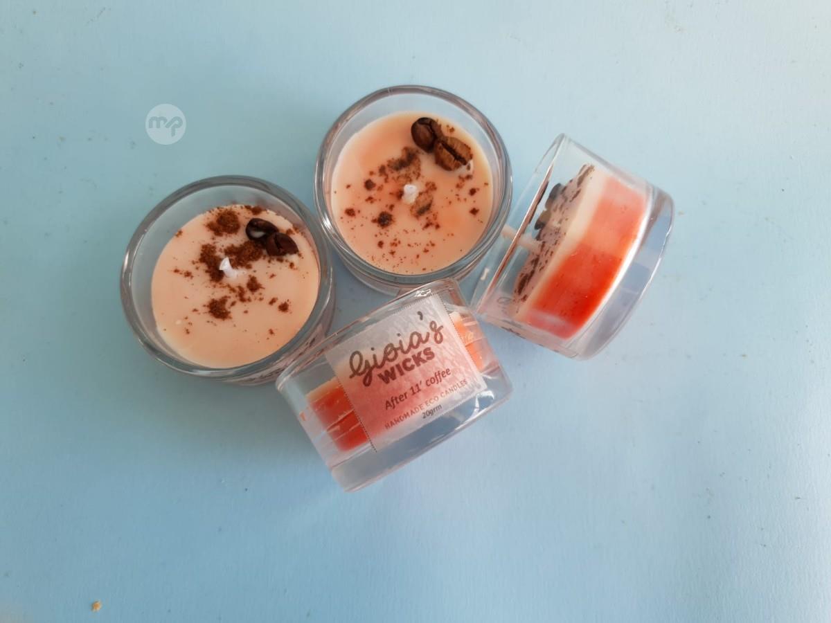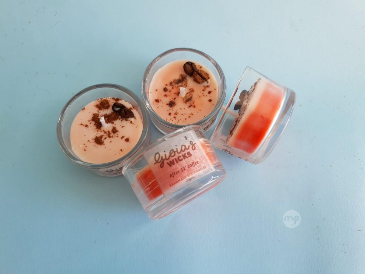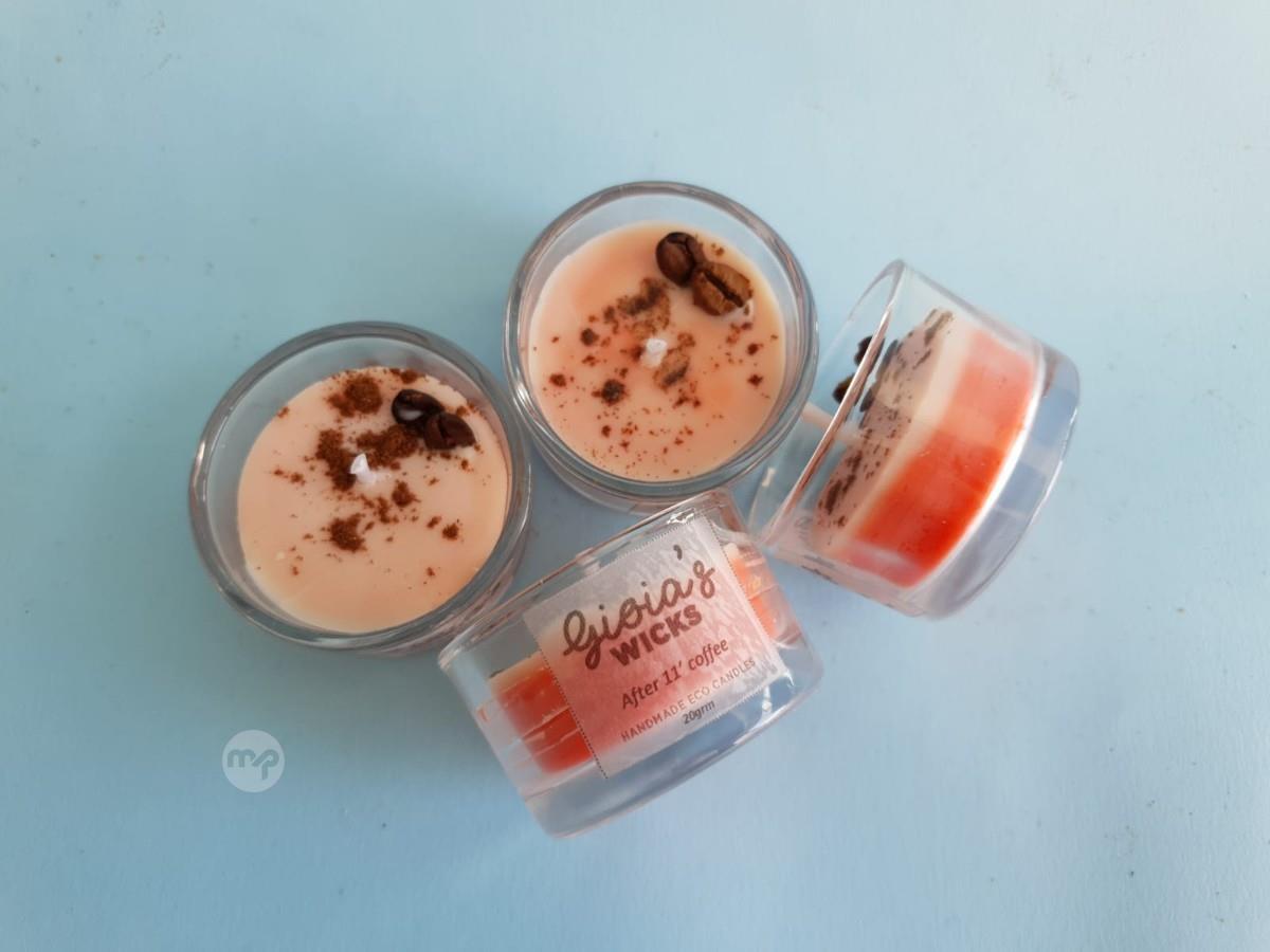 Hand poured, eco- soy scented candle in glass votive (20gr) set of 2, After 11 coffee
