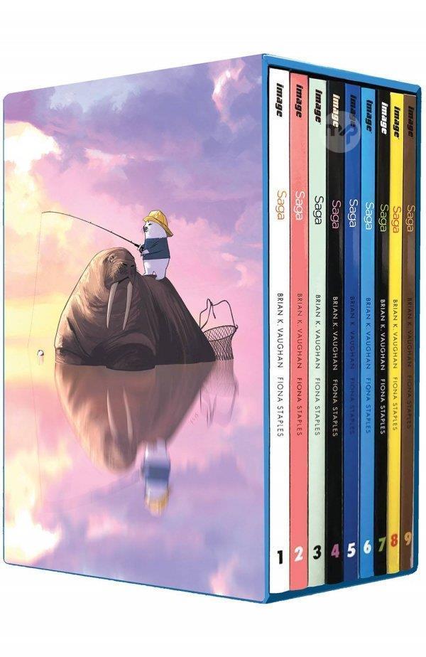 Collects SAGA VOL. 1-9 trade paperback with a set of 6 x 9 cover prints exclusive to the box set!