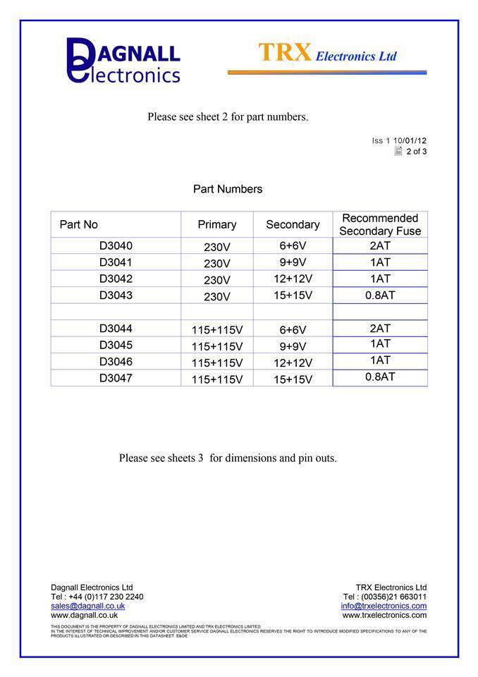 • Single 230V primary winding