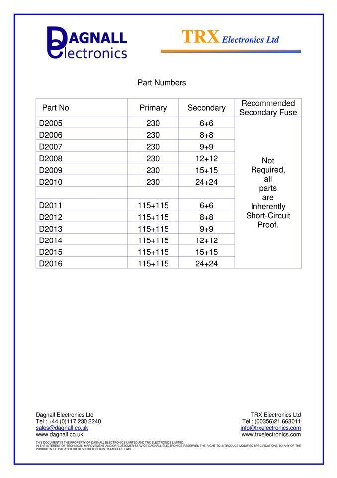 Single or twin secondary windings for series or parallel connection (For conformance reasons,0.35 to 3.2VA transformers with 2 x 15 and 2 x 18V outputs and all transformers with 2x 24V outputs should not have their secondaries connected in series as this means they will not meet the VDE 0550 approval)