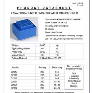 Transformers PCB Mount, Short Circuit Proof, VB & PT Series