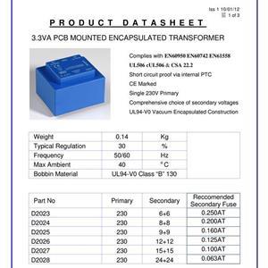 Single or twin secondary windings for series or parallel connection (For conformance reasons,0.35 to 3.2VA transformers with 2 x 15 and 2 x 18V outputs and all transformers with 2x 24V outputs should not have their secondaries connected in series as this means they will not meet the VDE 0550 approval)