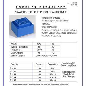 VB series (0.35 - 3.2VA) are inherently short circuit proof