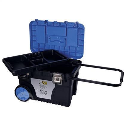 This wheeled tool box equipped solidly built chrome plated steel buckles with padlock loop, heavy duty aluminium profile handle, hard rubber Wheels for added durability. Thanks to the removable tray , there is a place to put small and bigger repair tools.