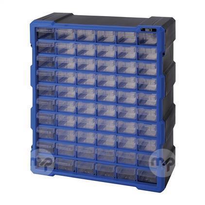 Vertical organiser includes 60 small drawers with dividers, finger-grip drawer pulls provide easy access and rear stop tabs prevent contents from spilling.