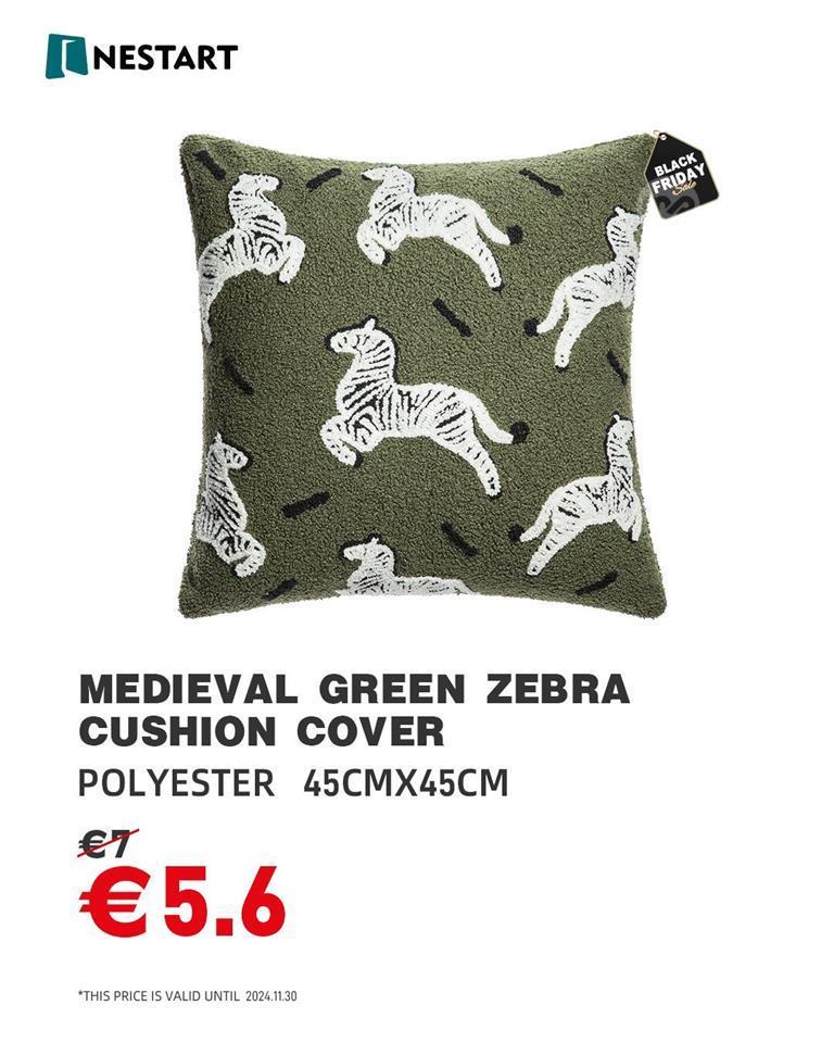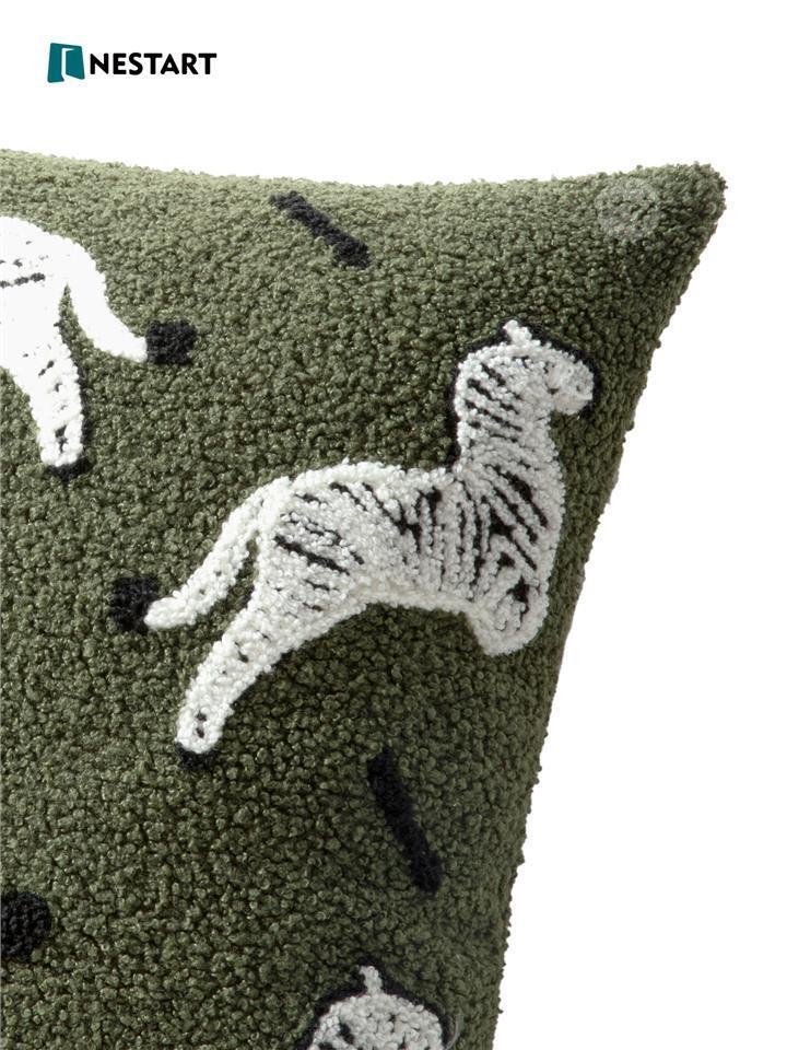 This cozy cushion features a fun and playful zebra print on a soft, green background. It's the perfect way to add a touch of safari style to your living room or bedroom.