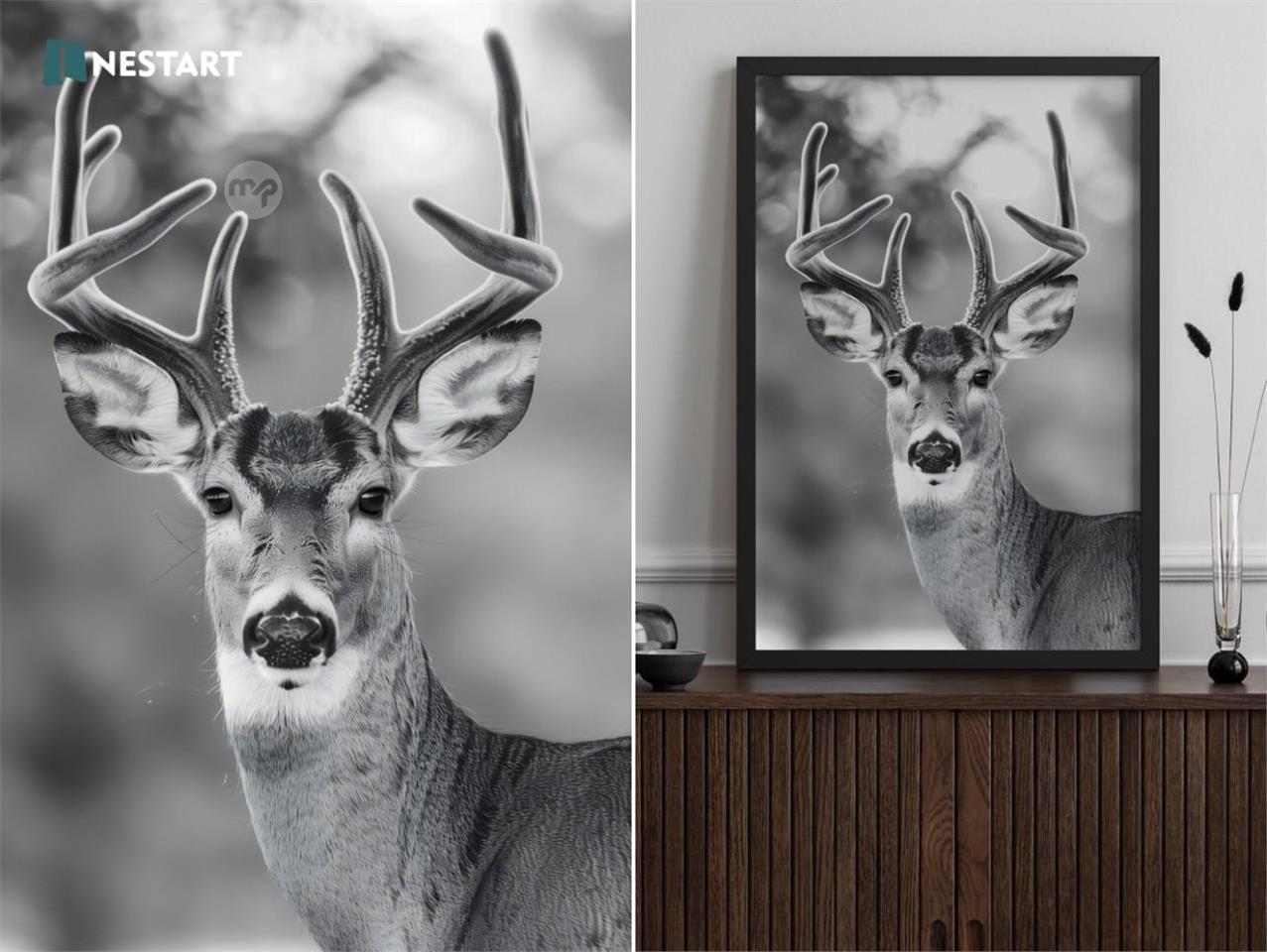 This majestic buck stands tall and proud, his antlers reaching for the sky. He's a symbol of strength and resilience, and a reminder of the beauty of the natural world.