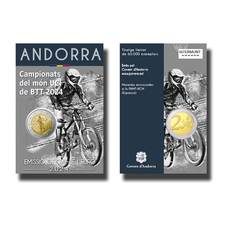 2024 Andorra 100 years of Skiing + Mountain Bike World Championship 2 Euro Coin Card Set of 2