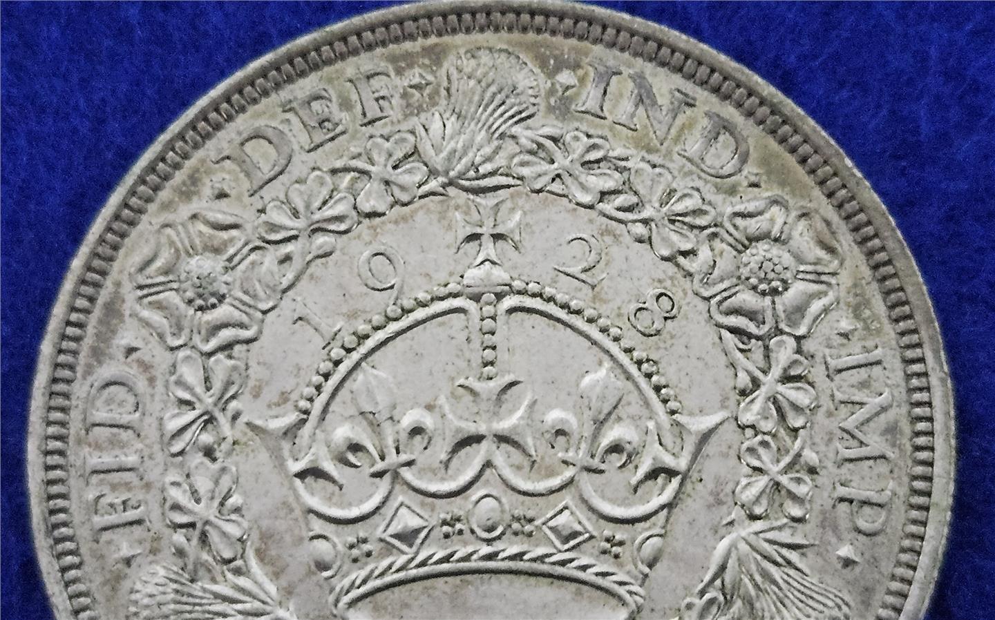 RARE 1928 Great Britain KGV George V .925 Silver Coin, Full Crown / 5 shillings VF