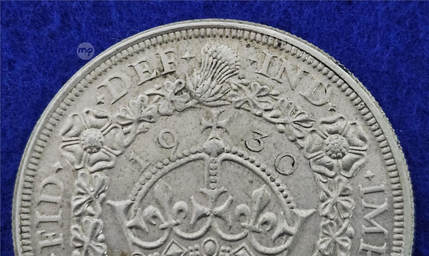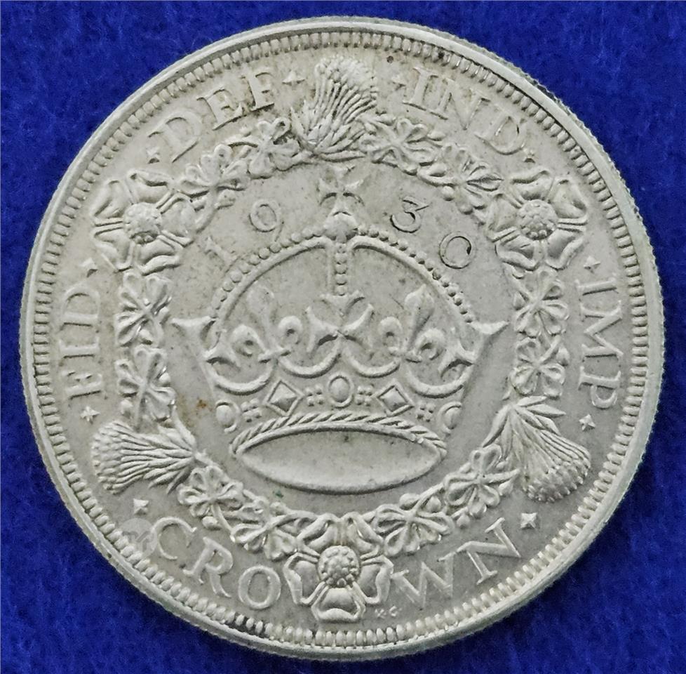 RARE 1930 Great Britain KGV George V .925 Silver Coin, Full Crown / 5 shillings EF
