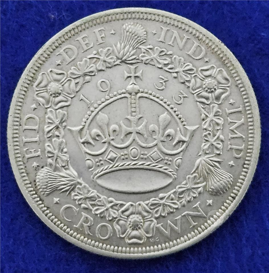 RARE 1933 Great Britain KGV George V .925 Silver Coin, Full Crown / 5 shillings EF / UNC