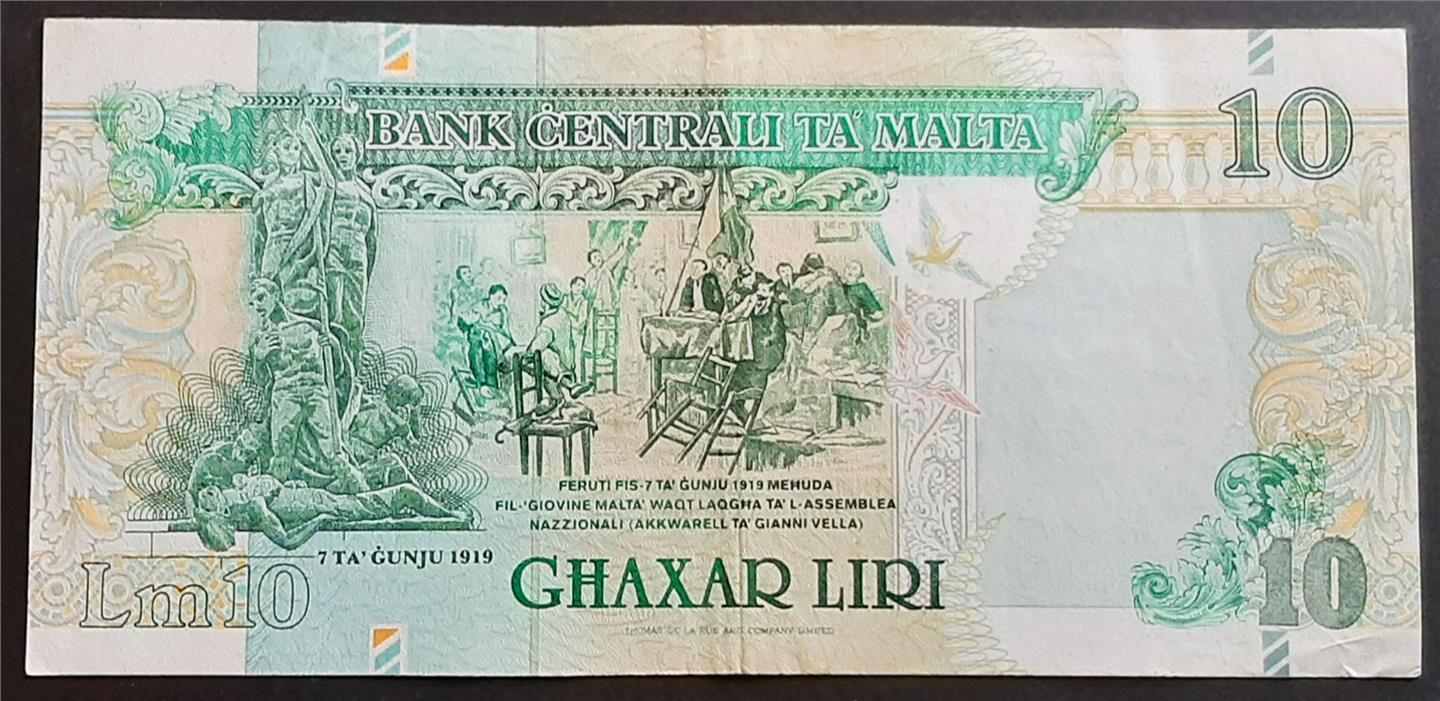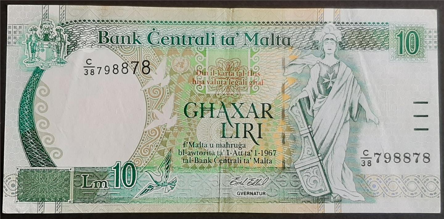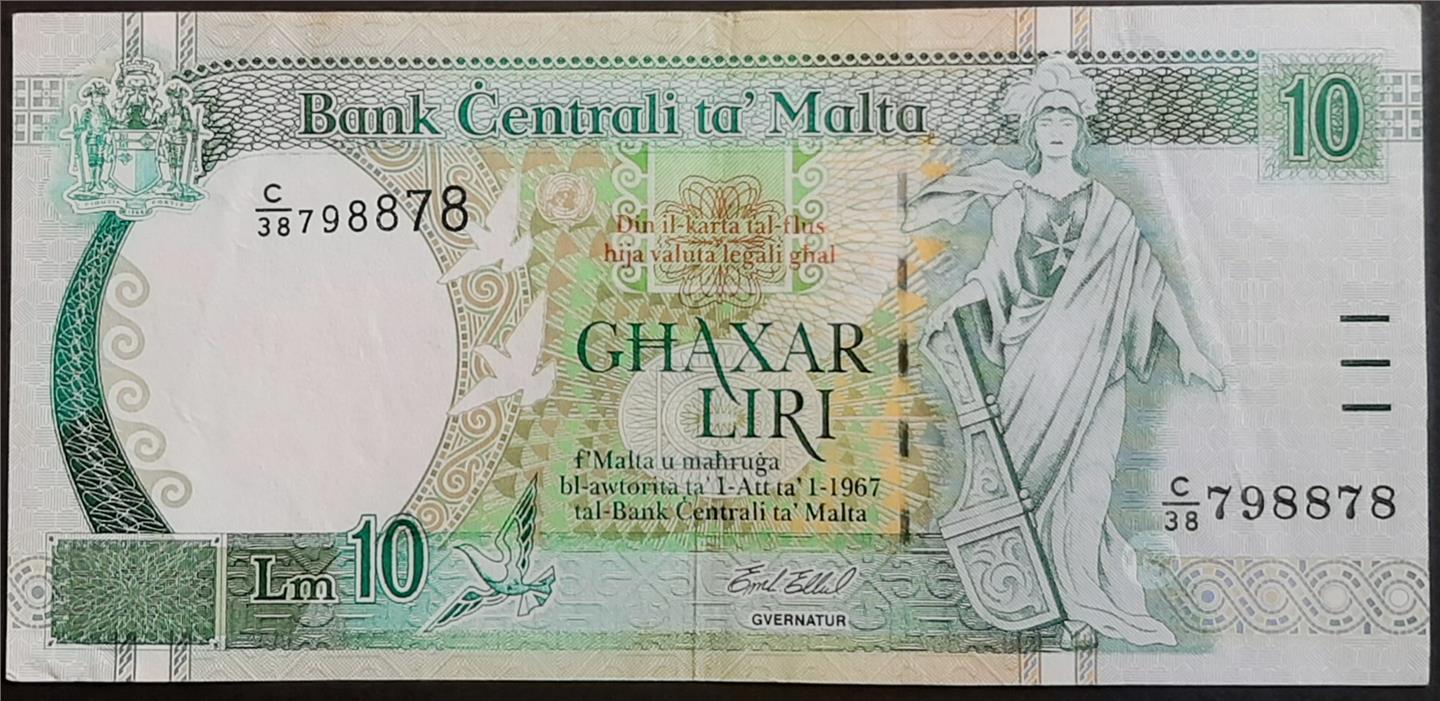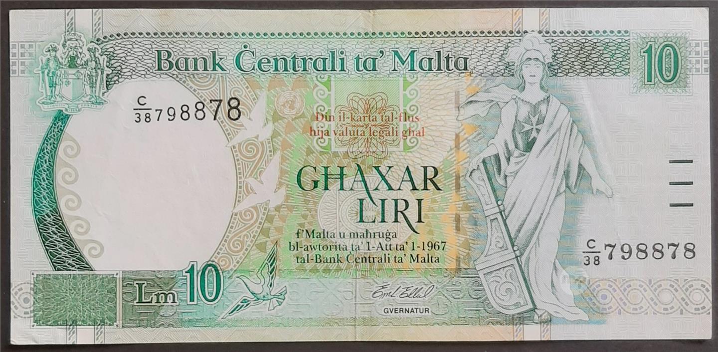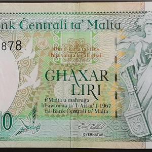 MALTA GHAXAR LIRI (LM10) BANKNOTE signed EML. ELLUL