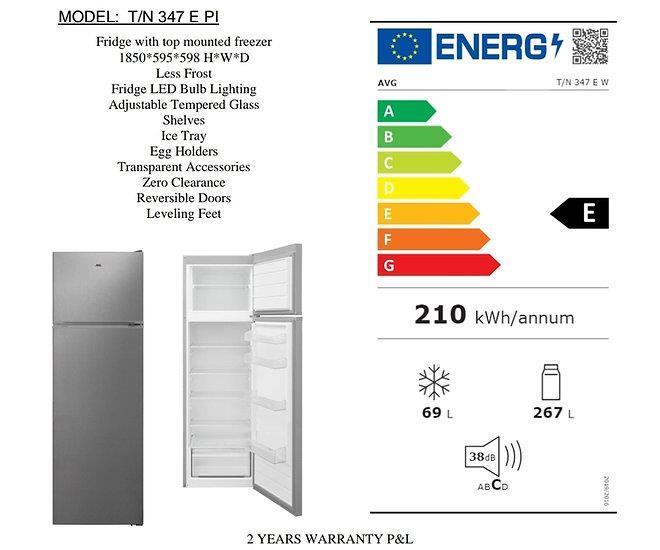 INOX Avg Top Mounted Fridge Freezer.Less Frost. Model 347
