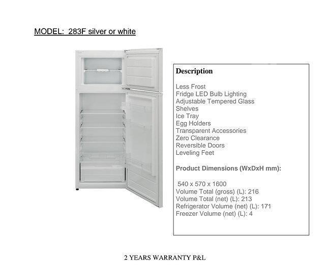 WHITE&BLACK General Fridge Freezer. Model number 283