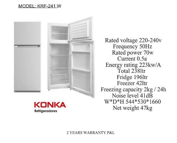 Thumbnail: KONKA FRIDGE WITH A TOP MOUNTED FREEZER , CLASS F . MODEL KRF-241 Thumbnail: KONKA FRIDGE WITH A TOP MOUNTED FREEZER , CLASS F . MODEL KRF-241 2 YEARS WARRANTY P&L Rated voltage 220-2