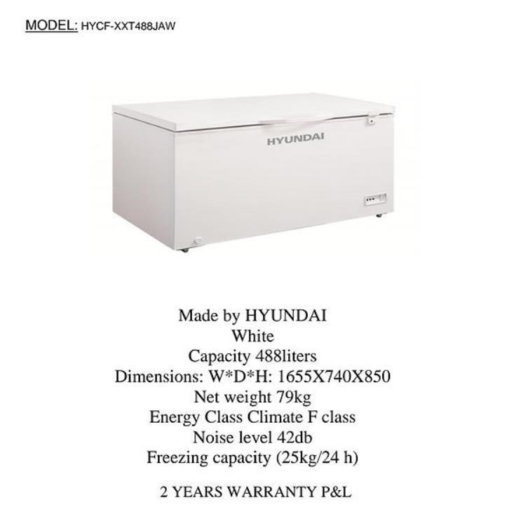 CHEST FREEZER HYUNDAI 166CM CLASS F 488LT. MODEL XXT488