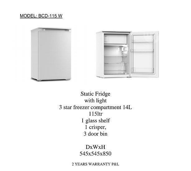 WHITE AND INOX TABLE MODEL FRIDGE WITH A FREEZER INSIDE. MODEL BCD-115