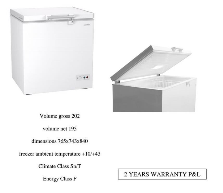 SIMFER CHEST FREEZER 195LTR. MODEL CF2220