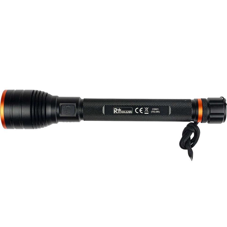 ALUMINUM RECHARGEABLE FLASHLIGHT 50W LED, 3500 LM, 231MM, ZOOM C5921 RICHMANN