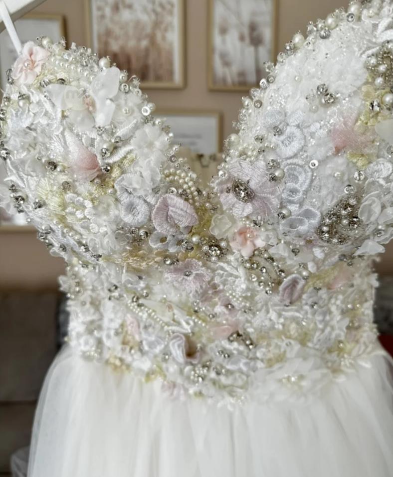 JeWeLove corset wedding dress with removeable sleeves. Bought in Italy for 4500euros. Its corset detail is very beautiful. At the back its with zip and corset. Im a size 10, fitted perfectly. Its a romantic beautiful dress ♥️ selling at a very good price of 650euro 🙂
