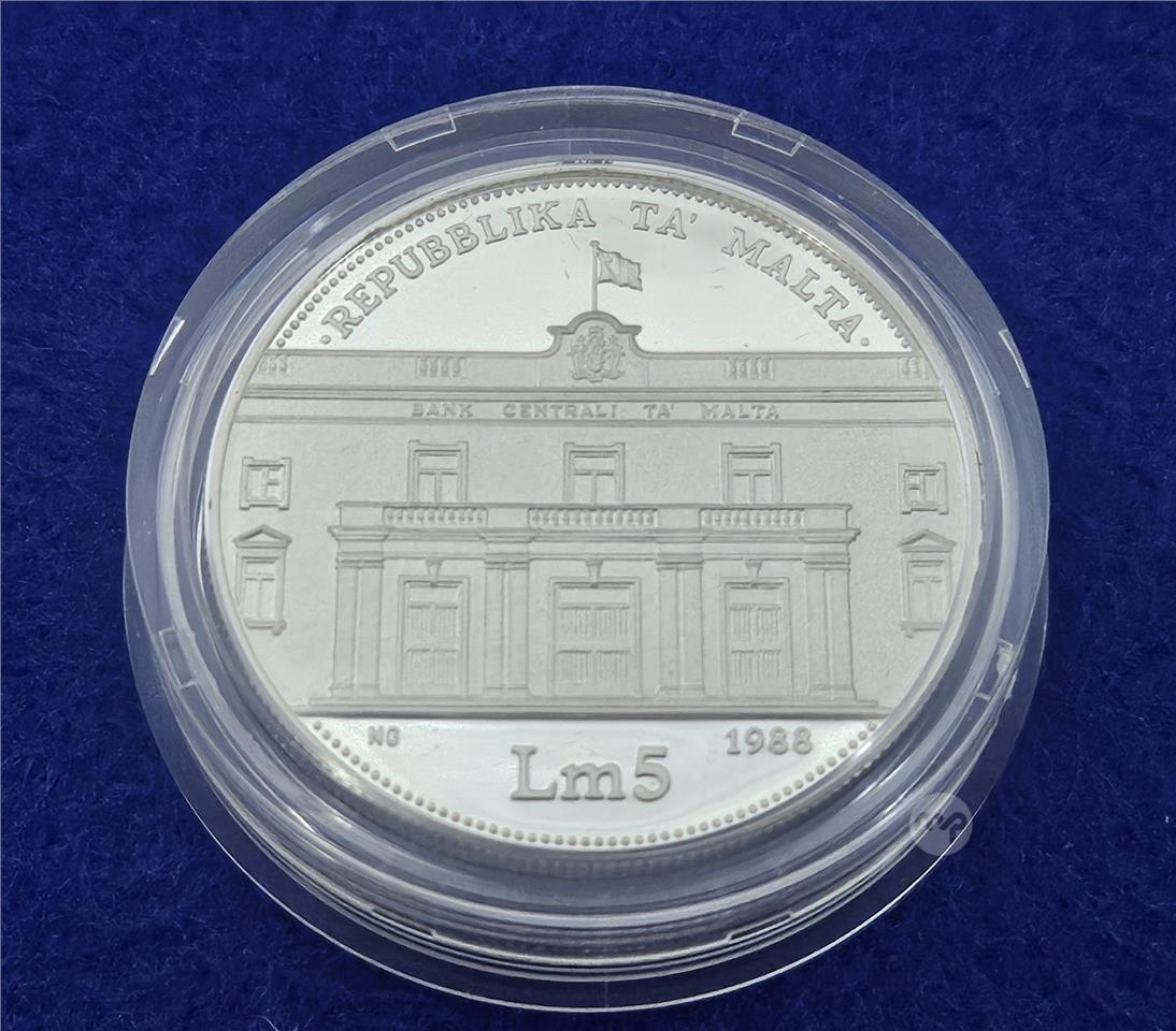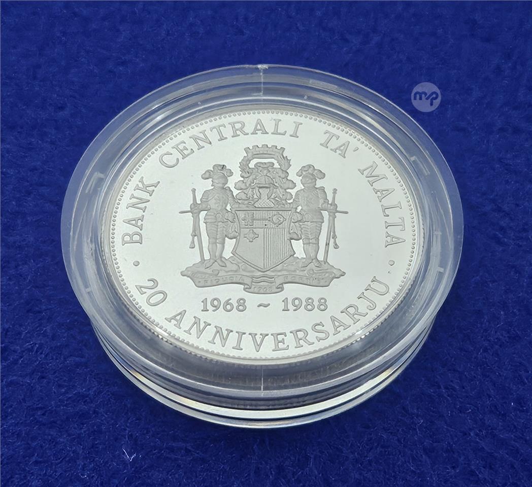 1968-1988 20th Anniversary of the Central Bank of Malta 56.56g, .925 silver issue limit 500 PIEDFORT / PIEFORT