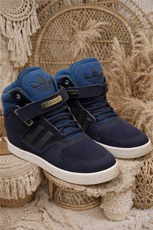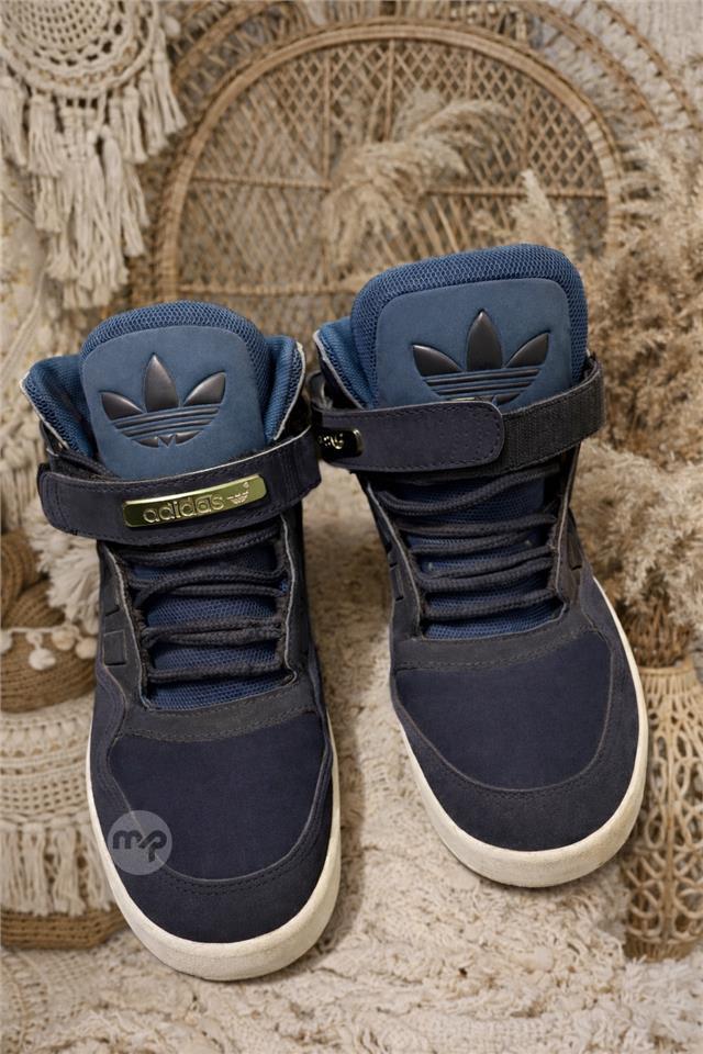 Stylish men’s Adidas high-top sneakers in navy blue, combining comfort and classic streetwear design.